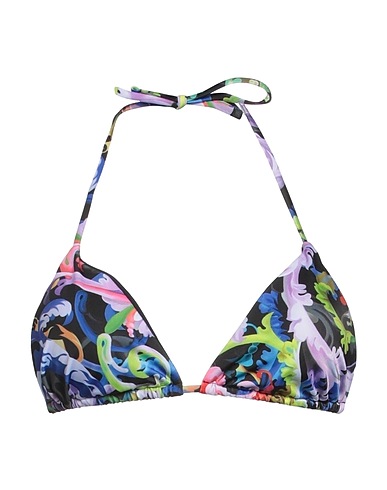 triangle bikini top, synthetic jersey, multicolor, brand logo, tie fastening, stretch