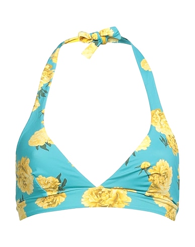 triangle bikini top, synthetic jersey, floral-print, brand logo, tie fastening, stretch, hand wash or dry clean, do not bleach, do not tumble dry