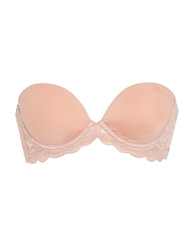bandeau bra, lace, synthetic jersey, solid color, no appliqués, hook fastenings, removable padding, underwire bra
