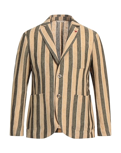 woven, brooch, striped, lapel collar, single-breasted , long sleeves, partially lined interior, 2 buttons, multipockets, dual back vents, dry clean, do not tumble dry, do not bleach, single-breasted jacket