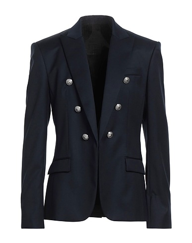 cool wool, embellished, solid color with appliqués, lapel collar, single-breasted , long sleeves, fully lined, multipockets, rear slit, dry clean, do not tumble dry, do not bleach, single-breasted jacket, large sized