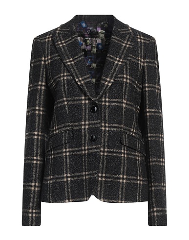 tweed, no appliqués, tartan pattern, lapel collar, long sleeves, fully lined, button fastenings, flap pockets, dry clean, do not bleach, do not tumble dry, single-breasted blazer
