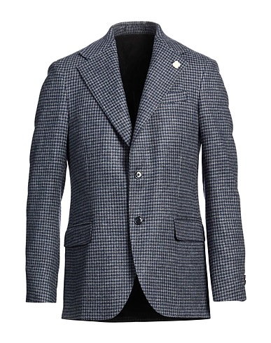single-breasted blazer, woven, brooch, brand logo, houndstooth, lapel collar, long sleeves, fully lined, button fastenings, flap pockets, dual back vents, stretch, dry clean, do not bleach, do not tumble dry