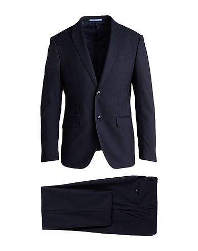 single-breasted suit, woven, solid color, no appliqués, lapel collar, long sleeves, fully lined, button fastenings, multipockets, mid rise, stretch, dry clean, do not bleach, do not tumble dry