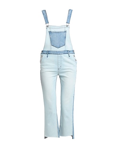 denim, faded, brand logo, two-tone, medium wash, overalls top, sleeveless, button closing, multipockets, stretch