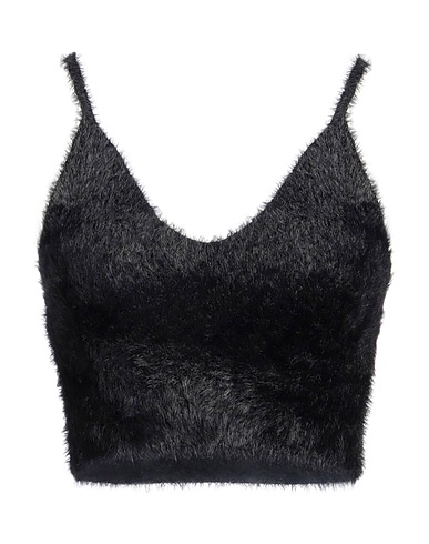 crop top, knitted, brushed-felt, medium-weight knit, no appliqués, solid color, deep neckline, sleeveless, no pockets