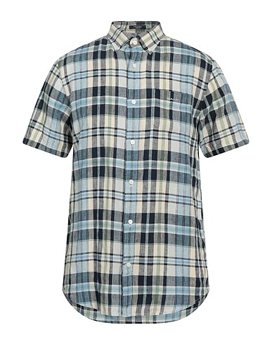 plain weave, brand logo, tartan pattern, button-down collar, short sleeves, button closing, single chest pocket