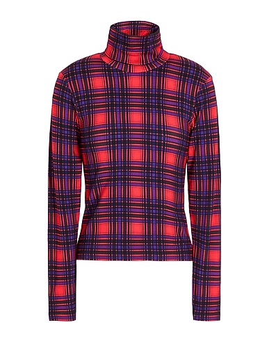 t-shirt, jersey, tartan pattern, no appliqués, turtleneck, long sleeves, stretch