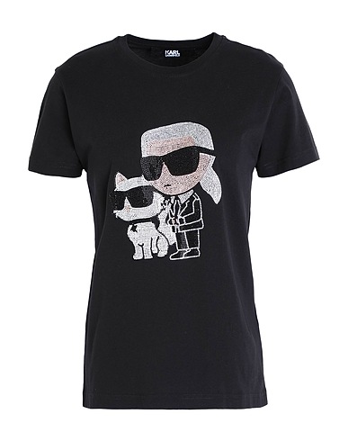 printed t-shirt, jersey, solid color with appliqués, crystals, brand logo, crewneck, short sleeves