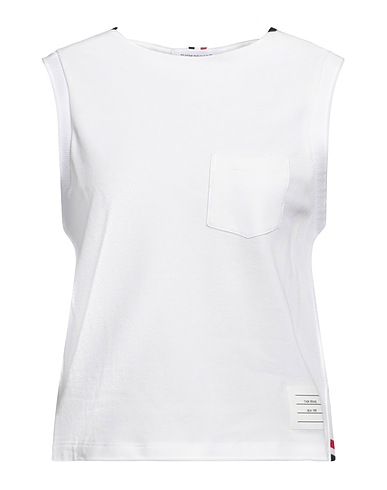 top, piqué, solid color with appliqués, brand logo, knitted trims, crewneck, sleeveless, one chest pocket, hand wash or dry clean, do not bleach, do not tumble dry