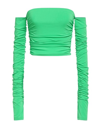 off-the-shoulder top, jersey, solid color, gathered, long sleeves, stretch, hand wash or dry clean, do not tumble dry