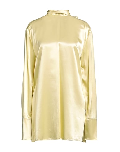 satin, no appliqués, solid color, bow-tie neckline, long sleeves, buttoned cuffs, no pockets, contains non-textile parts of animal origin, long shirt