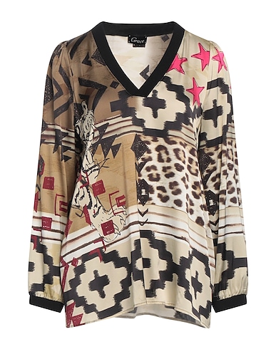 top, satin, knitted trims, multicolor, v-neck, long sleeves, without pockets, stretch, hand wash, do not bleach, do not tumble dry