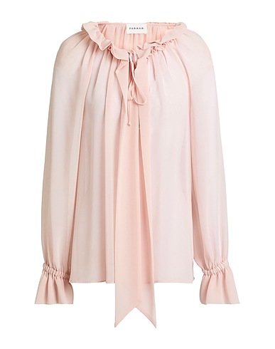 ruched top, crepe, solid color, no appliqués, bow-tie neckline, long sleeves, tie fastening, machine wash or dry clean, do not bleach, do not tumble dry