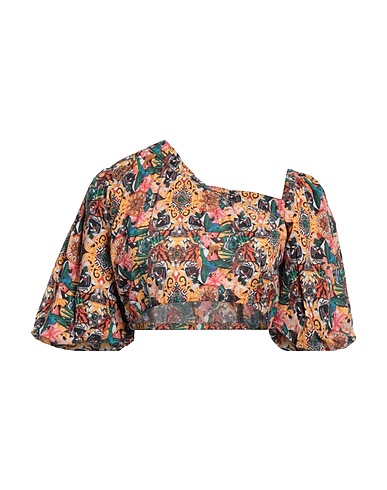 crop top, woven, multicolor, beads, scoop neckline, short sleeves, handmade, hand wash, do not bleach, do not tumble dry, do not iron