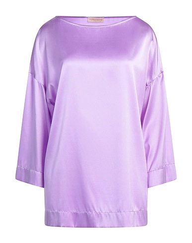 top, satin, solid color, no appliqués, crewneck, long sleeves, side slit hemline, stretch, dry clean, do not bleach, do not tumble dry