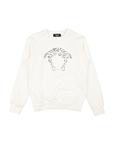 french terry, solid color with appliqués, brand logo, crystals, crewneck, long sleeves, hand wash, do not bleach, do not tumble dry