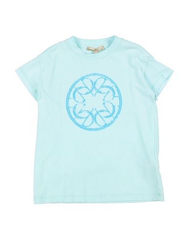jersey, solid color with appliqués, sequins, brand logo, crewneck, short sleeves, stretch, hand wash, do not bleach, do not tumble dry
