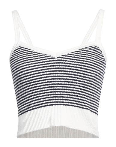 crop top, knitted, lightweight knit, striped, no appliqués, sweetheart neckline, sleeveless, stretch, hand wash or dry clean, do not bleach, do not tumble dry