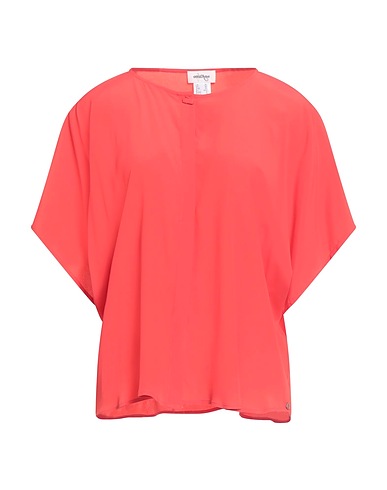 shirt, crepe, solid color, brand logo, crewneck, short sleeves, concealed button fastenings, dry clean, do not bleach, do not tumble dry