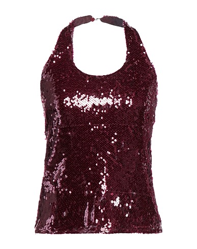 top, tulle, solid color, sequins, halterneck, sleeveless, fully lined, 1 button, stretch, hand wash, do not tumble dry