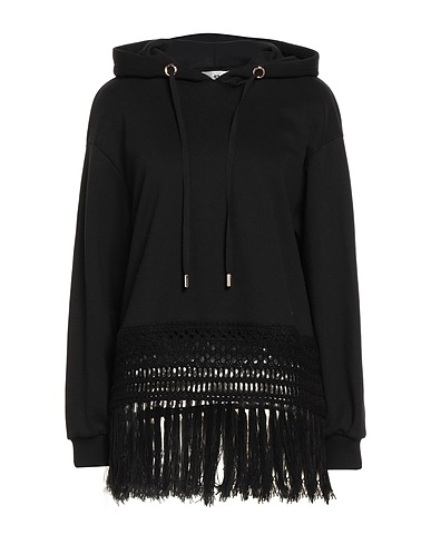 french terry, knitted, medium-weight knit, solid color, brand logo, hooded, long sleeves, machine wash or dry clean, do not bleach, do not tumble dry