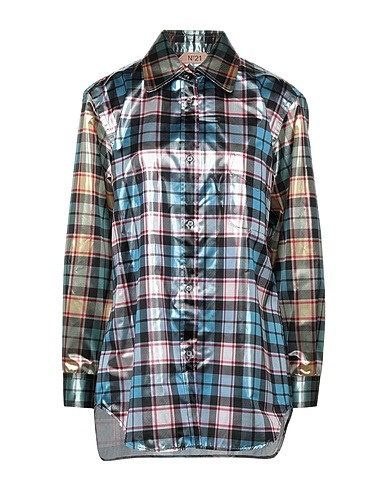 shirt, satin, checked, no appliqués, classic collar, long sleeves, buttoned cuffs, unlined, button fastenings, one chest pocket