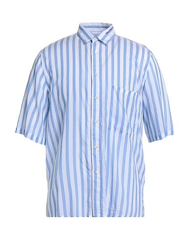 regular-fit shirt, woven, striped, brand logo, embroidered, classic collar, short sleeves, button fastenings, one chest pocket
