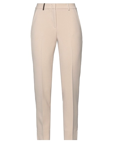 tapered pants, woven, stretchy fabric, solid color, leather trims, mid rise, regular fit, zipper fastening, hook fastenings, side slit hemline, slit pockets, welt pockets, machine wash or dry clean, do not bleach, tumble dry, contains non-textile parts of animal origin