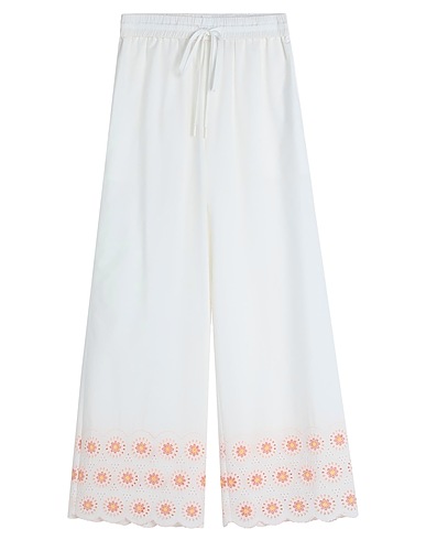 plain weave, lace, no appliqués, multicolor pattern, high waisted, straight leg, regular fit, drawstring closure, multipockets, pants