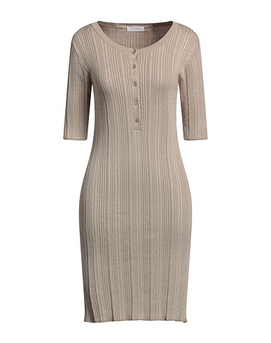 knitted, lightweight knit, no appliqués, solid color, crewneck, 3/4 length sleeves, unlined, button fastenings, stretch, bodycon dress