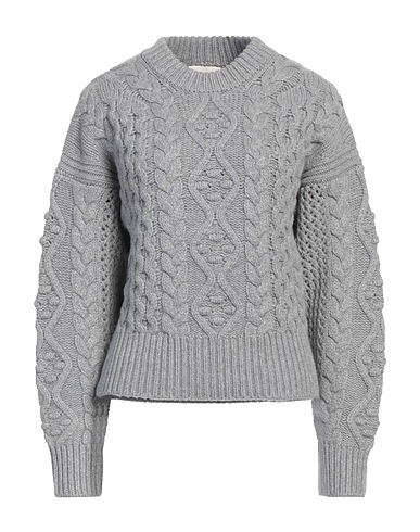 cable-knit, medium-weight knit, mélange, no appliqués, crewneck, long sleeves, hand wash or dry clean, do not bleach, do not tumble dry