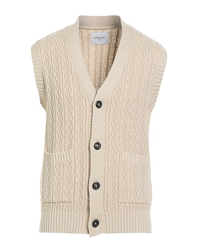 wool, ribbed, medium-weight knit, solid color, no appliqués, sleeveless, button fastenings, multipockets, hand wash or dry clean, do not bleach, do not tumble dry