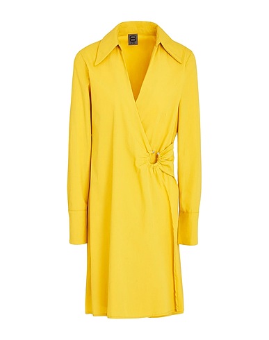 plain weave, metal applications, frills, solid color, deep neckline, long sleeves, buttoned cuffs, unlined, 1 button, shirt dress.This garment contains a Digital ID, meaning you can discover a world of exclusive content about your piece; scan the QR code on the item's care label.