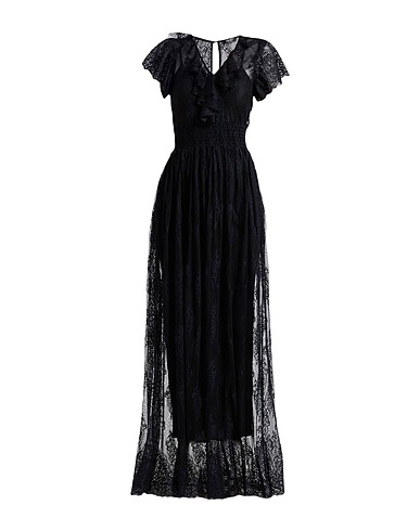 flared dress, lace, solid color, shirred, ruffles, v-neck, short sleeves, partially lined, 1 button, without pockets, hand wash or dry clean, do not bleach, do not tumble dry
