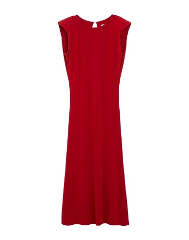 flared dress, synthetic jersey, no appliqués, solid color, crewneck, sleeveless, shoulder pads, 1 button, without pockets, stretch, dry clean, do not bleach, do not tumble dry
