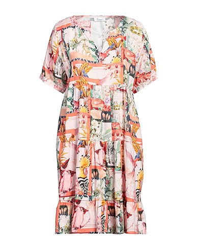 pleated dress, linen, multicolor, no appliqués, mandarin collar, short sleeves, without pockets, hand wash or dry clean, do not bleach, do not tumble dry, planning a weekend getaway or beach vacation? this is the effortless summer style you need