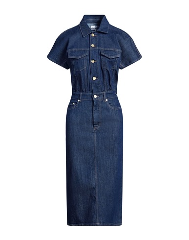 shirt dress, denim, embellished, embroidered, solid color with appliqués, classic collar, dark wash, short sleeves, unlined, button fastenings, multipockets, machine wash, do not bleach, do not tumble dry