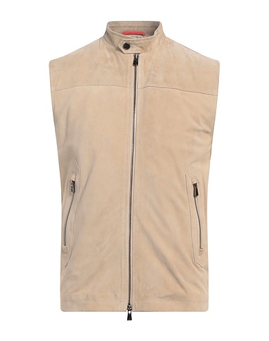 suede, solid color, no appliqués, mandarin collar, sleeveless, fully lined, zipper fastening, multipockets, contains non-textile parts of animal origin, dry clean, do not bleach, do not tumble dry