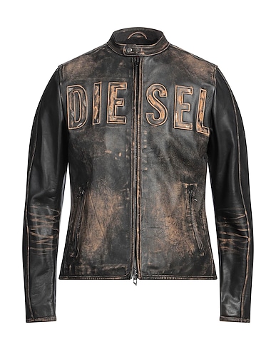 biker jacket, leather, solid color with appliqués, brand logo, mandarin collar, long sleeves, fully lined, zipper fastening, zipped pockets, contains non-textile parts of animal origin, do not wash, do not bleach, do not tumble dry, do not iron