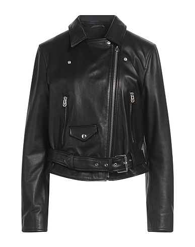 biker jacket, leather, solid color, no appliqués, classic collar, long sleeves, fully lined, zipper fastening, multipockets, contains non-textile parts of animal origin, do not wash, do not bleach, do not tumble dry, this brand runs small
