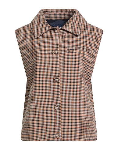 woven, no appliqués, checked, classic collar, sleeveless, synthetic filling, lightweight padding, button fastenings, slit pockets, dry clean, do not bleach, do not tumble dry