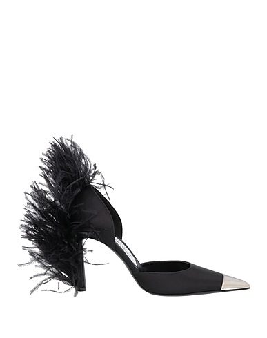 pumps, satin, solid color with appliqués, feathers, metal applications, leather lining, pointed toe, stiletto heel, leather sole, contains non-textile parts of animal origin