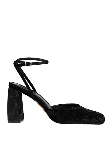 pumps, velvet, solid color, no appliqués, fully lined, buckle-fastening ankle strap, square toe, square heel, covered heel, rubber sole