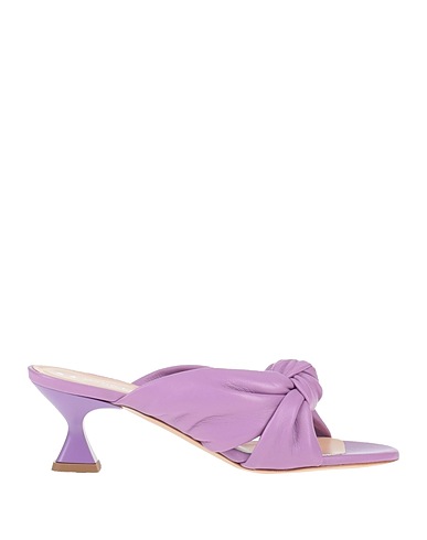 slide sandals, leather, solid color, gathered, leather lining, round toe, spool heel, rubber sole, contains non-textile parts of animal origin