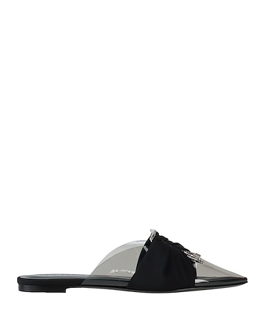plastic, plain weave, crystals, multicolor, leather lining, narrow toeline, flat, leather sole, contains non-textile parts of animal origin, mules model