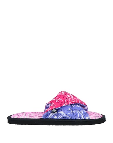 plain weave, no appliqués, multicolor, internal padding, round toeline, flat, rubber cleated sole, slide sandals