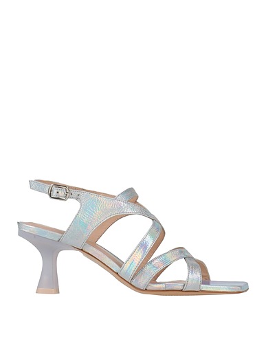 ankle strap sandals, leather, metallic, no appliqués, iridescent, leather lining, buckle-fastening ankle strap, square toe, spool heel, rubber sole, contains non-textile parts of animal origin