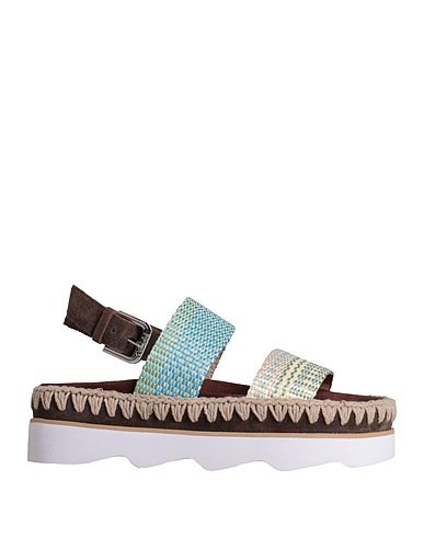 suede, raffia, no appliqués, multicolor, leather lining, buckle fastening, round toe, flat, rubber cleated sole, contains non-textile parts of animal origin, ankle strap sandals