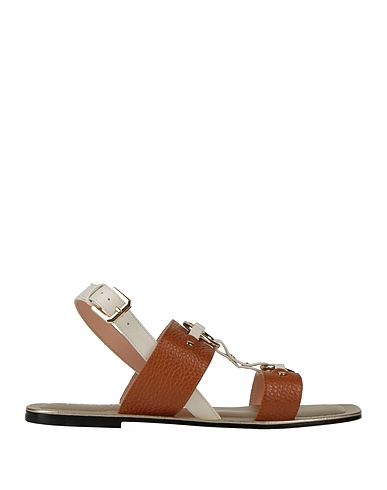 textured leather, brand logo, metal applications, two-tone, fully lined, buckle fastening, square toe, flat, leather sole, contains non-textile parts of animal origin, ankle strap sandals